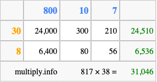 Below is an illustration showing you how to calculate 817 times 38 using the box method, using the instructions above.
