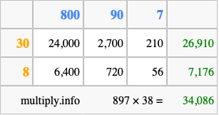 Finally, we add up all the sums we found in step 3 to get our final answer to 897 times 38.