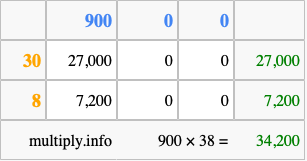 Finally, we add up all the sums we found in step 3 to get our final answer to 900 times 38.
