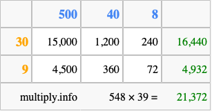 Finally, we add up all the sums we found in step 3 to get our final answer to 548 times 39.