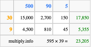 Finally, we add up all the sums we found in step 3 to get our final answer to 595 times 39.
