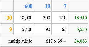 Below is an illustration showing you how to calculate 617 times 39 using the box method, using the instructions above.