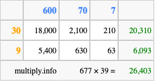 That's all there is to it! As you can see from the box above, the answer to 677 times 39 using the box method is 26,403.