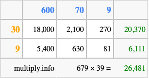 That's all there is to it! As you can see from the box above, the answer to 679 times 39 using the box method is 26,481.