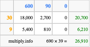 Finally, we add up all the sums we found in step 3 to get our final answer to 690 times 39.