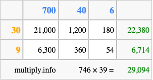 That's all there is to it! As you can see from the box above, the answer to 746 times 39 using the box method is 29,094.
