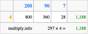 Below is an illustration showing you how to calculate 297 times 4 using the box method, using the instructions above.