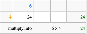 That's all there is to it! As you can see from the box above, the answer to 6 times 4 using the box method is 24.