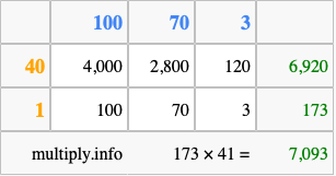 Below is an illustration showing you how to calculate 173 times 41 using the box method, using the instructions above.