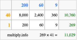 Below is an illustration showing you how to calculate 269 times 41 using the box method, using the instructions above.