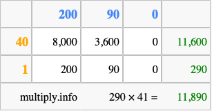 Finally, we add up all the sums we found in step 3 to get our final answer to 290 times 41.