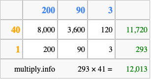 Below is an illustration showing you how to calculate 293 times 41 using the box method, using the instructions above.