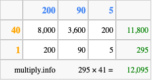 Finally, we add up all the sums we found in step 3 to get our final answer to 295 times 41.
