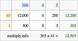 Finally, we add up all the sums we found in step 3 to get our final answer to 305 times 41.