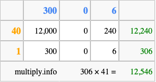 Finally, we add up all the sums we found in step 3 to get our final answer to 306 times 41.