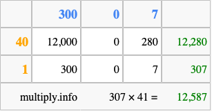 Finally, we add up all the sums we found in step 3 to get our final answer to 307 times 41.