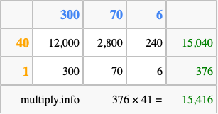 Finally, we add up all the sums we found in step 3 to get our final answer to 376 times 41.