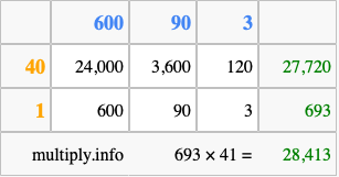 Finally, we add up all the sums we found in step 3 to get our final answer to 693 times 41.
