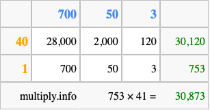 Finally, we add up all the sums we found in step 3 to get our final answer to 753 times 41.