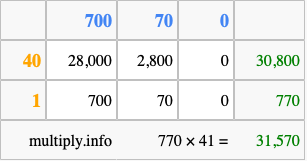That's all there is to it! As you can see from the box above, the answer to 770 times 41 using the box method is 31,570.