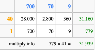 That's all there is to it! As you can see from the box above, the answer to 779 times 41 using the box method is 31,939.