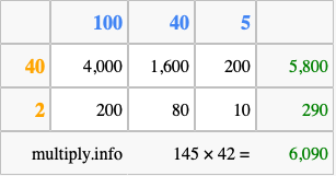Finally, we add up all the sums we found in step 3 to get our final answer to 145 times 42.