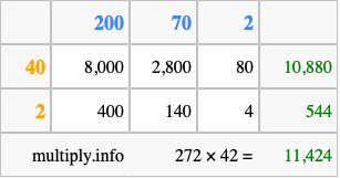 Finally, we add up all the sums we found in step 3 to get our final answer to 272 times 42.