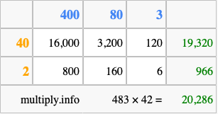 Finally, we add up all the sums we found in step 3 to get our final answer to 483 times 42.
