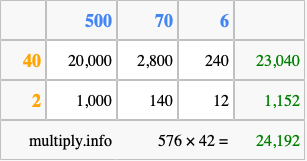 Finally, we add up all the sums we found in step 3 to get our final answer to 576 times 42.