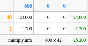 Finally, we add up all the sums we found in step 3 to get our final answer to 600 times 42.