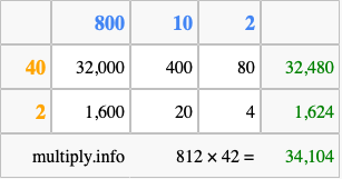 Finally, we add up all the sums we found in step 3 to get our final answer to 812 times 42.