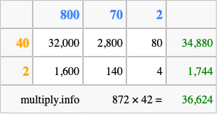 Finally, we add up all the sums we found in step 3 to get our final answer to 872 times 42.