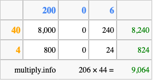 Finally, we add up all the sums we found in step 3 to get our final answer to 206 times 44.