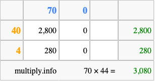 Finally, we add up all the sums we found in step 3 to get our final answer to 70 times 44.