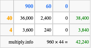 Finally, we add up all the sums we found in step 3 to get our final answer to 960 times 44.
