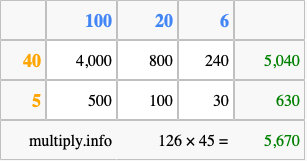 Finally, we add up all the sums we found in step 3 to get our final answer to 126 times 45.