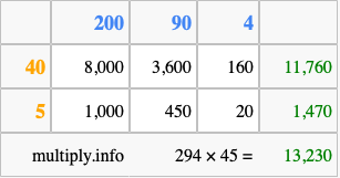 Finally, we add up all the sums we found in step 3 to get our final answer to 294 times 45.