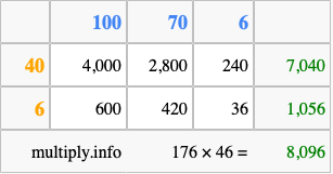 Finally, we add up all the sums we found in step 3 to get our final answer to 176 times 46.