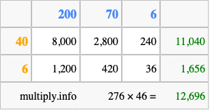 Finally, we add up all the sums we found in step 3 to get our final answer to 276 times 46.