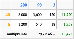 That's all there is to it! As you can see from the box above, the answer to 293 times 46 using the box method is 13,478.