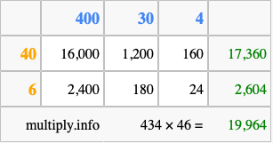 Finally, we add up all the sums we found in step 3 to get our final answer to 434 times 46.