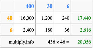 Finally, we add up all the sums we found in step 3 to get our final answer to 436 times 46.
