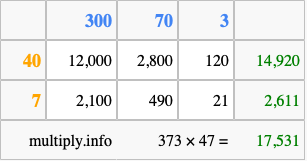 Finally, we add up all the sums we found in step 3 to get our final answer to 373 times 47.
