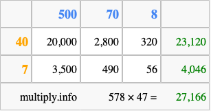 Finally, we add up all the sums we found in step 3 to get our final answer to 578 times 47.