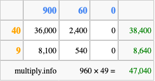 Below is an illustration showing you how to calculate 960 times 49 using the box method, using the instructions above.