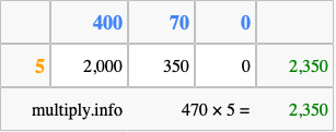Below is an illustration showing you how to calculate 470 times 5 using the box method, using the instructions above.