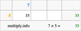 Below is an illustration showing you how to calculate 7 times 5 using the box method, using the instructions above.