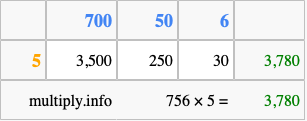 That's all there is to it! As you can see from the box above, the answer to 756 times 5 using the box method is 3,780.