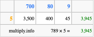 Finally, we add up all the sums we found in step 3 to get our final answer to 789 times 5.