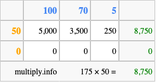 Below is an illustration showing you how to calculate 175 times 50 using the box method, using the instructions above.